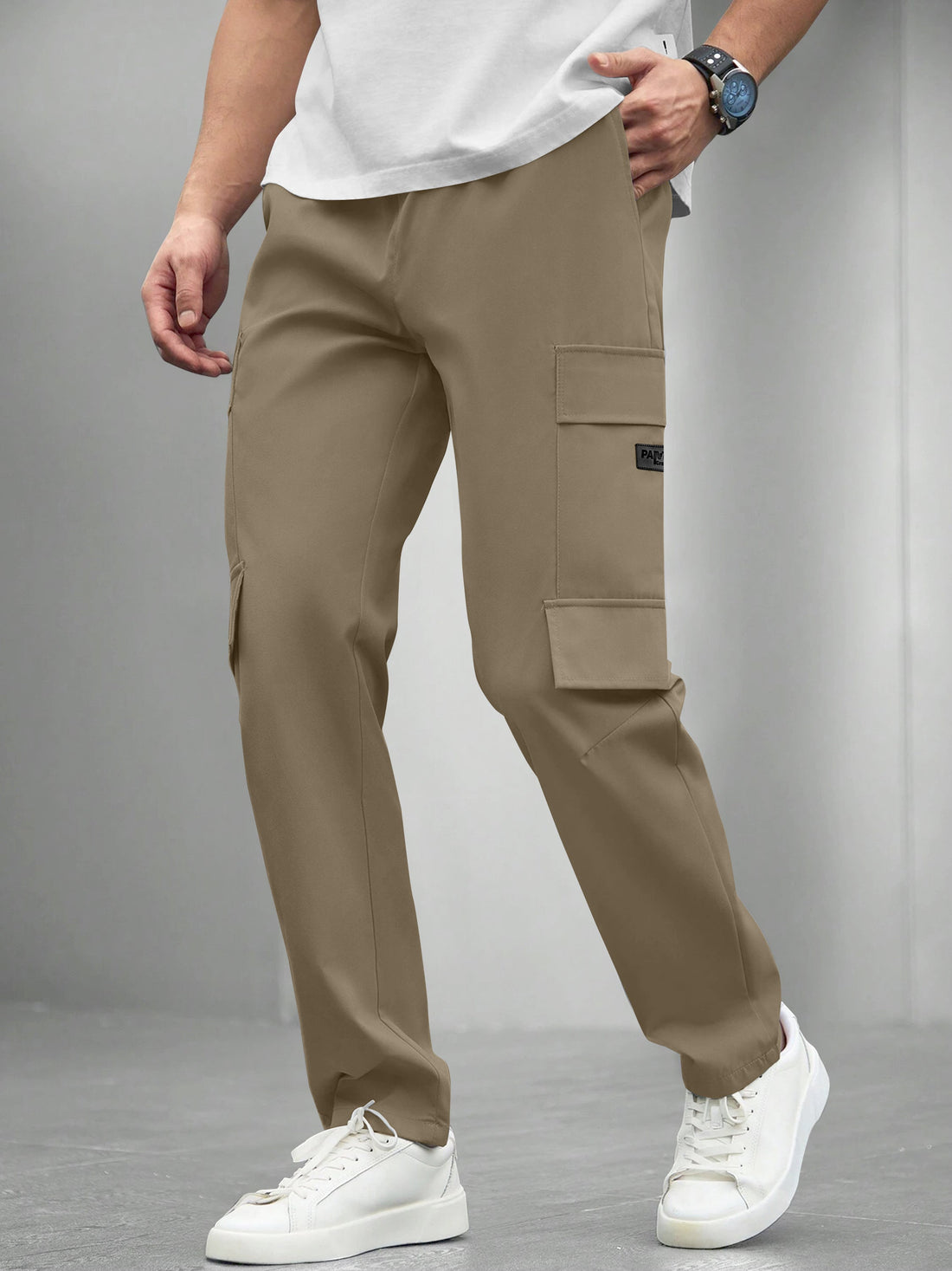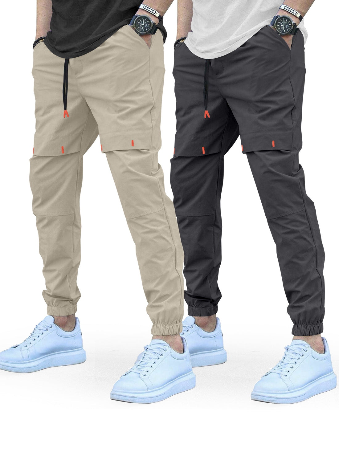Cargo Cotton Pants in Cream and Grey.Cargos for Men.Track Pant for Boys amd Men.Oversize Cargo Trouser.Men's Oversized Cargo Utility Joggers.Multi Poket pent.
