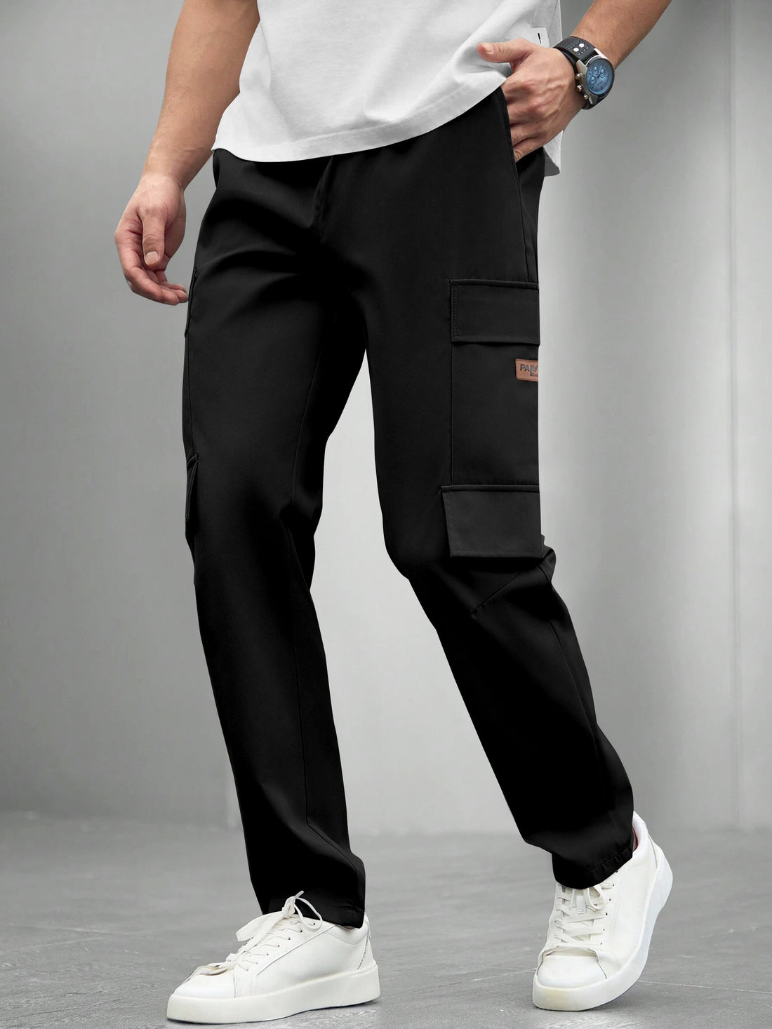 Name : Cargo Cotton Pants in Black and White.Cargos for Men.Track Pant for Boys amd...
