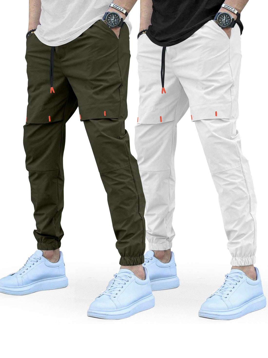 Cargo Cotton Pants in DarkGreen and White.Cargos for Men.Track Pant for Boys amd Men.Oversize Cargo Trouser.Men's Oversized Cargo Utility Joggers.Multi Poket pent.