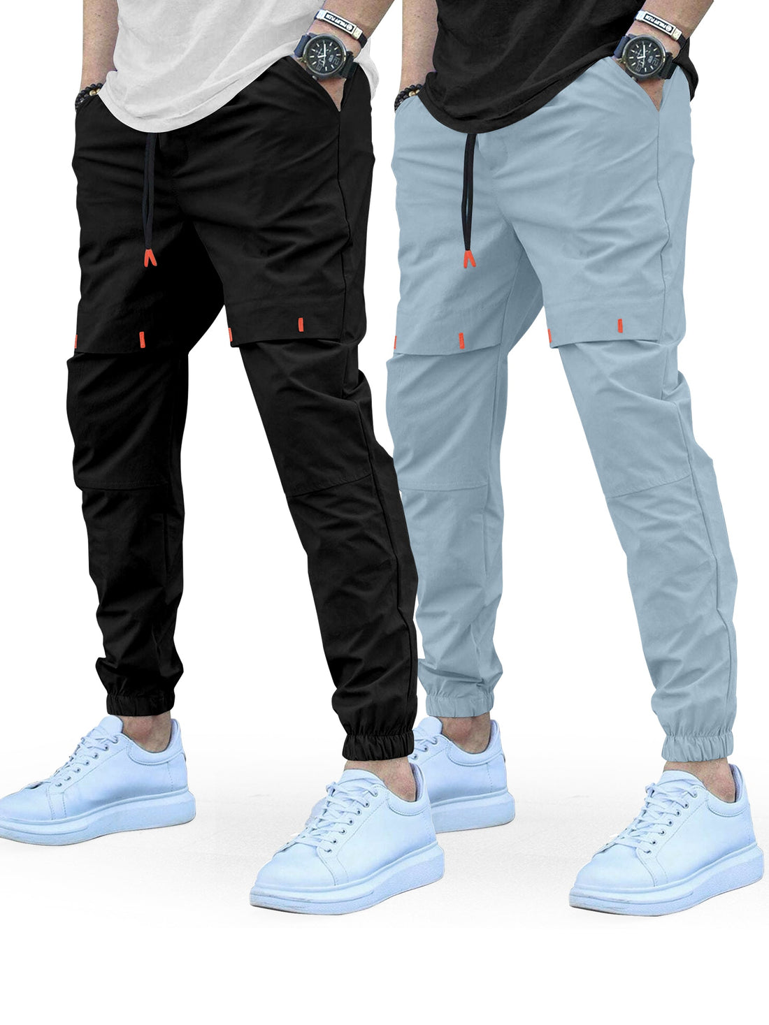 Cargo Cotton Pants in Black and Sky.Cargos for Men.Track Pant for Boys amd Men.Oversize Cargo Trouser.Men's Oversized Cargo Utility Joggers.Multi Poket pent.
