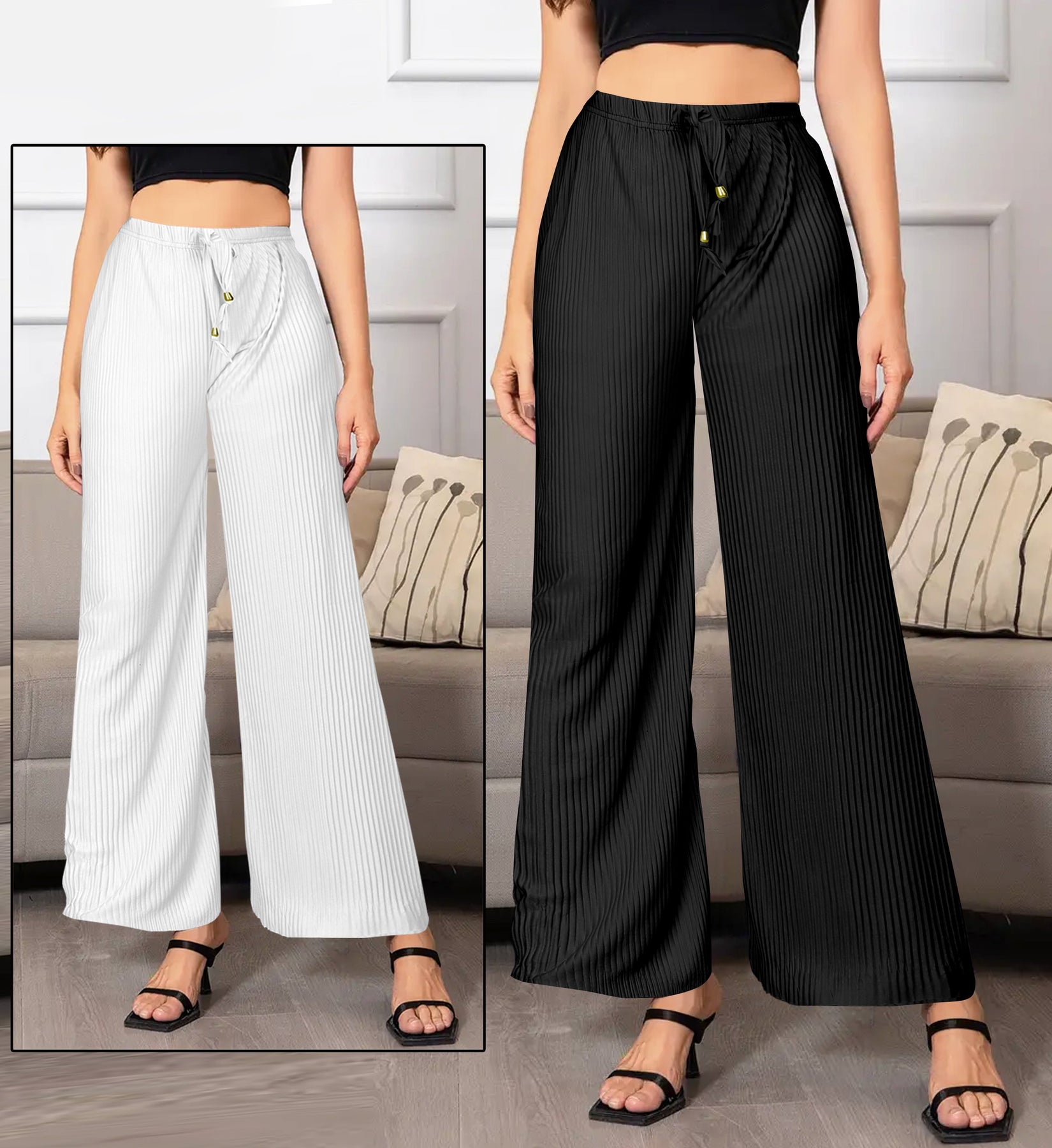 1. Luxurious Comfort: 😌 Slip into supreme comfort with our Women's Lycra Palazzos, crafted from premium quality fabric that feels soft against your skin.