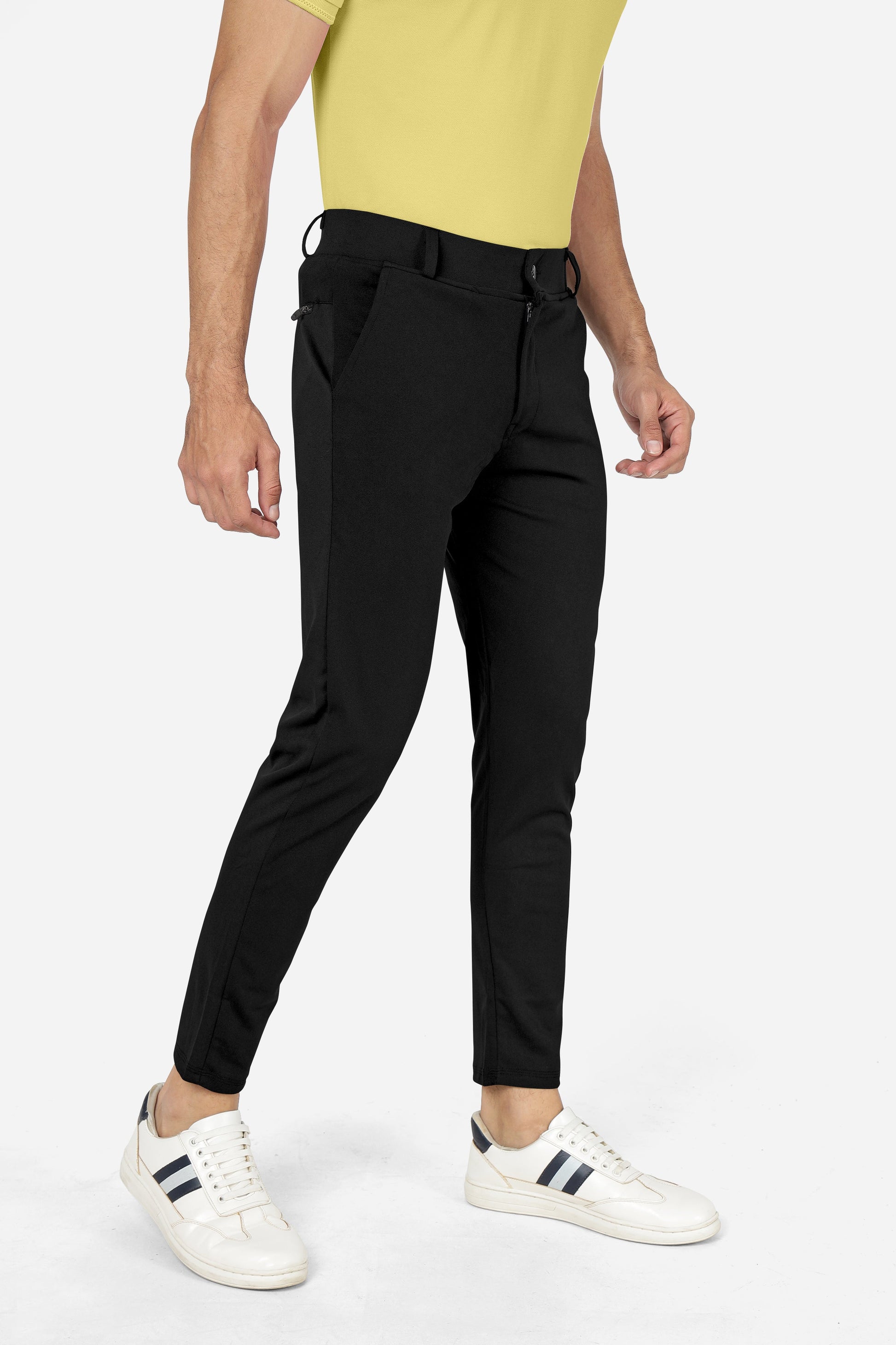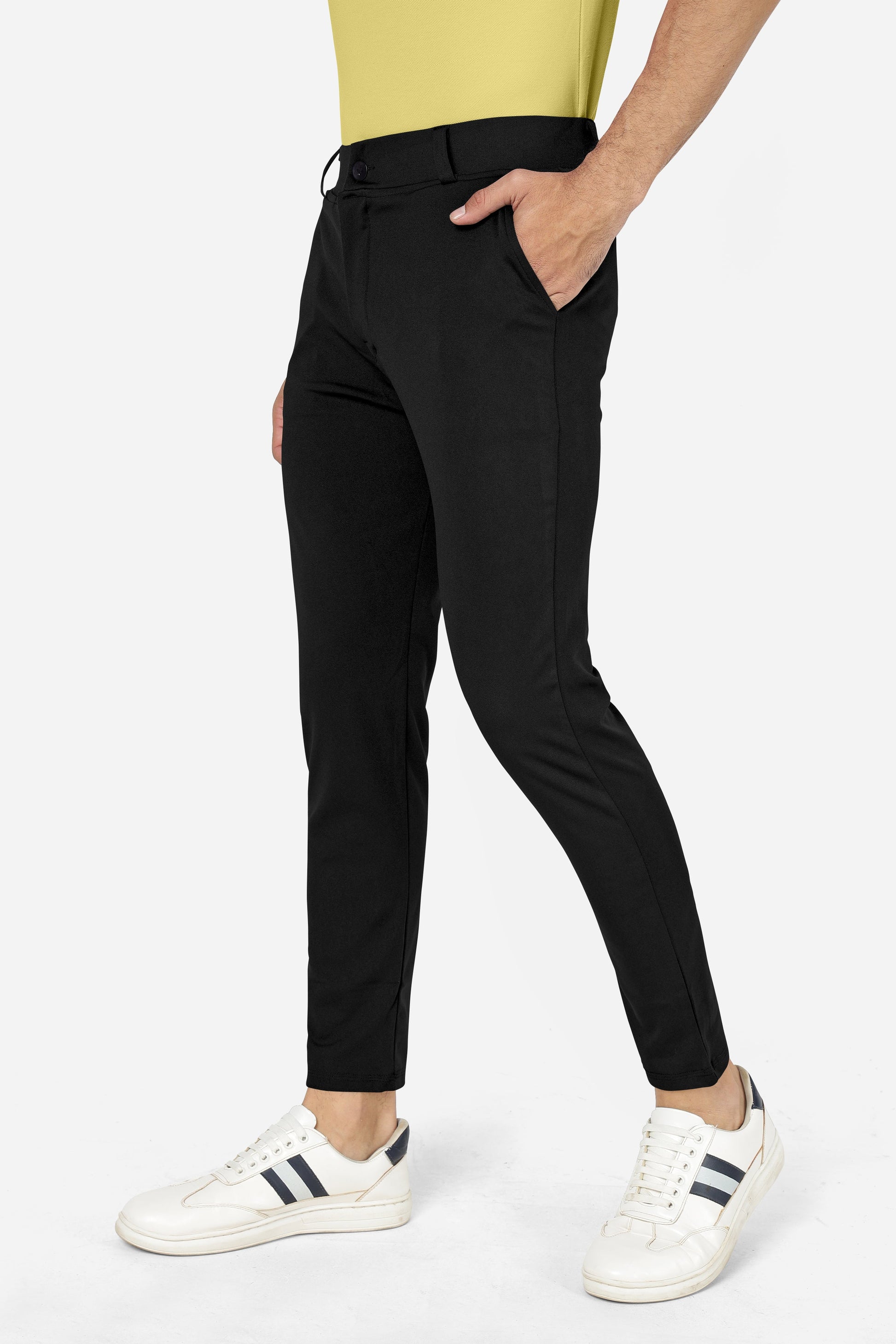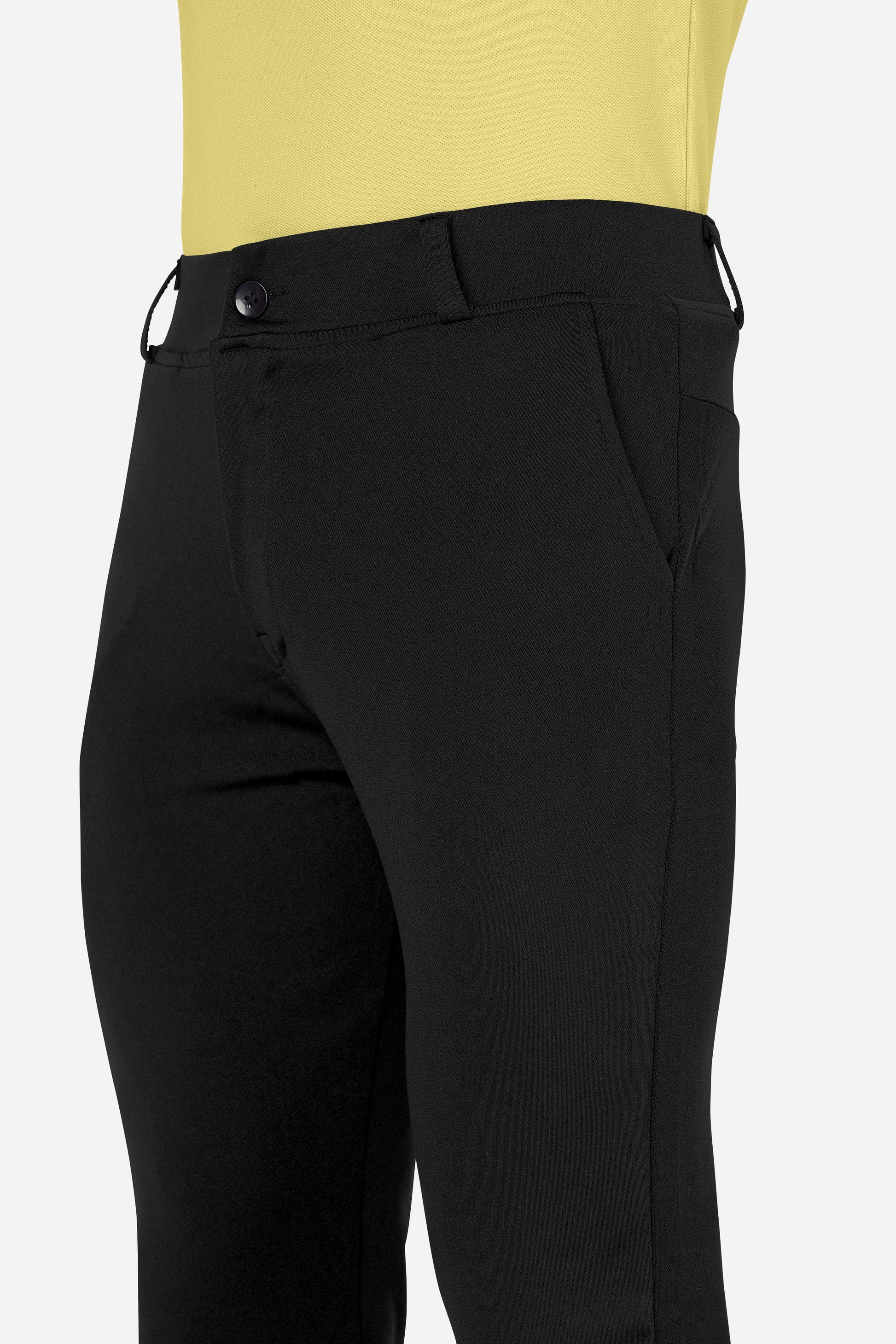 Formal Stretchable Black Pant with Expandable Waist for Men. Regular Fit, Flat Front, Premium Lycra Fabric Pants for Office, Party and Casual Wear