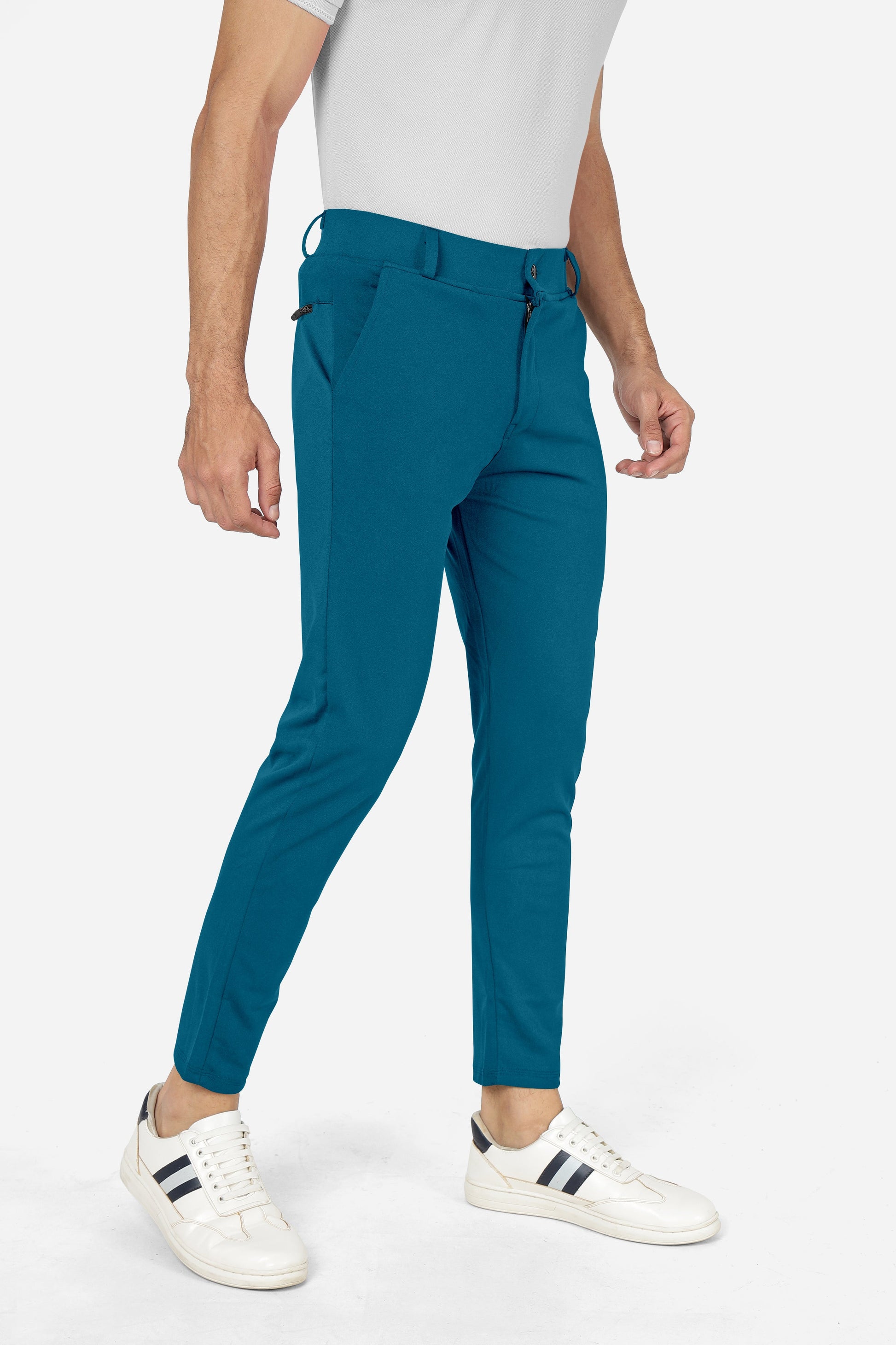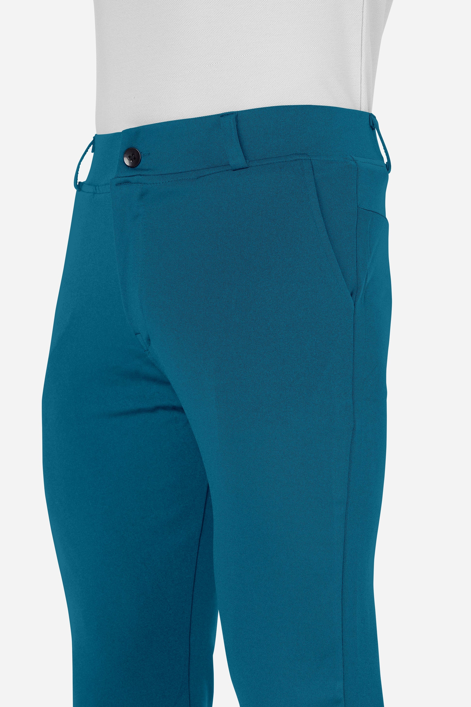 Formal Stretchable Teal Blue Pant with Expandable Waist for Men. Regular Fit, Flat Front, Premium Lycra Fabric Pants for Office, Party and Casual Wear