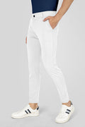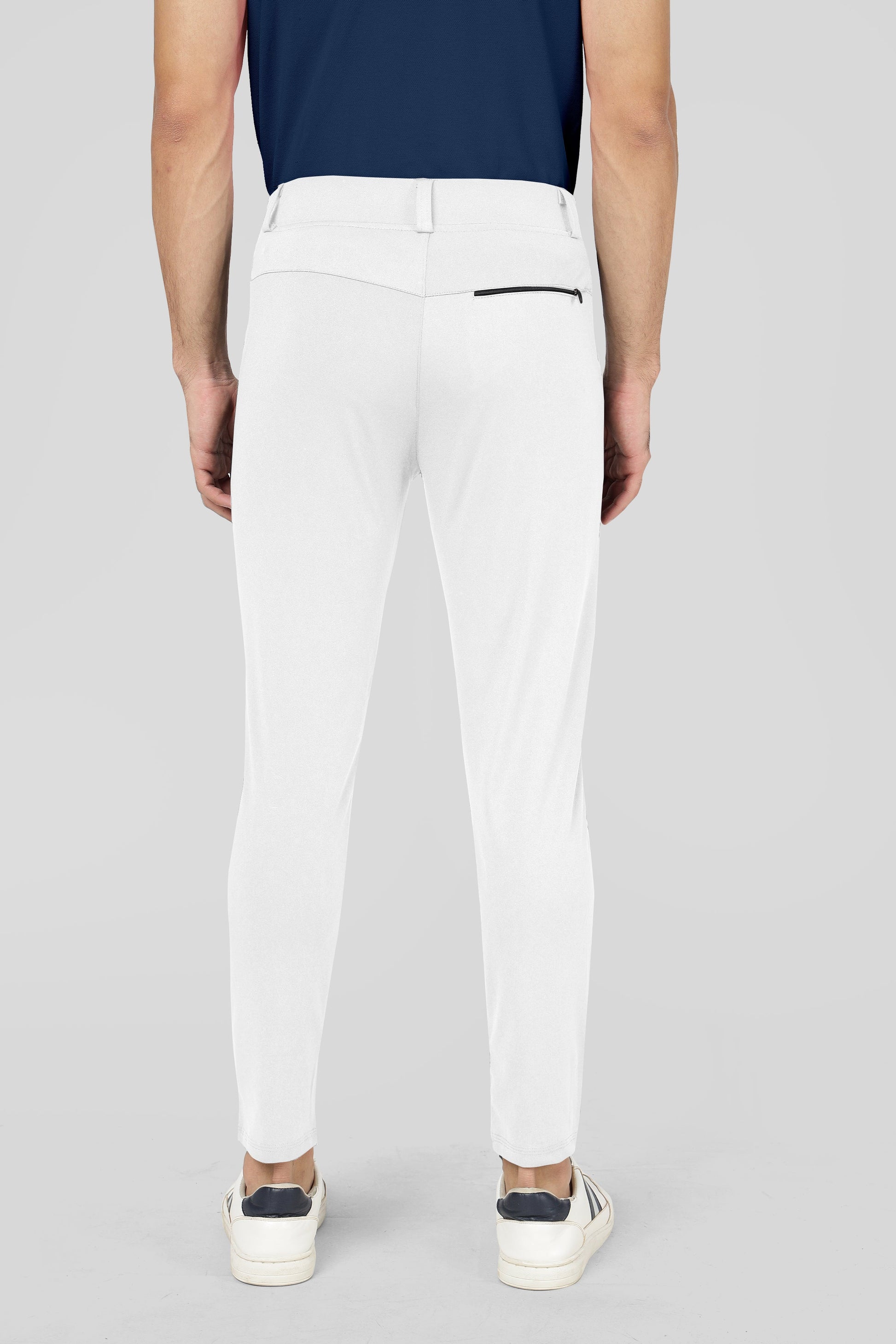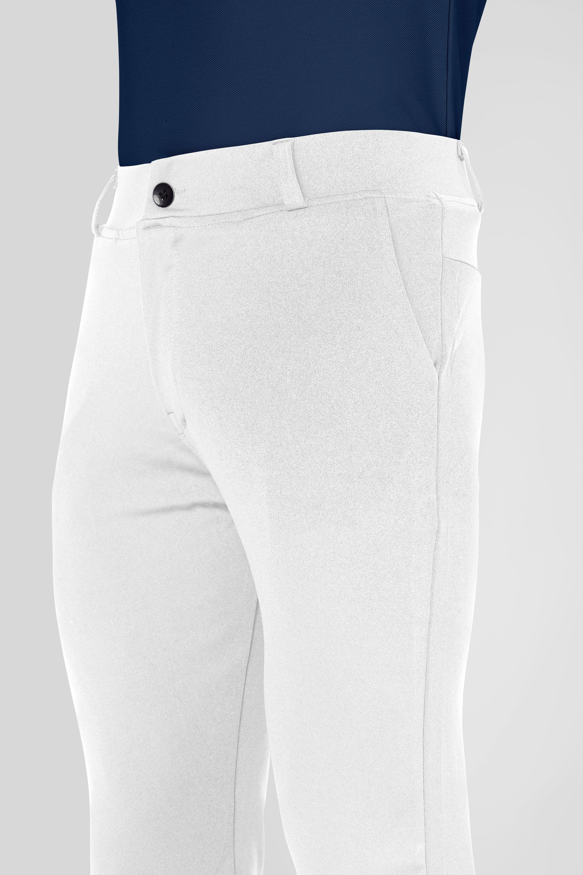 Formal Stretchable White Pant with Expandable Waist for Men. Regular Fit, Flat Front, Premium Lycra Fabric Pants for Office, Party and Casual Wear
