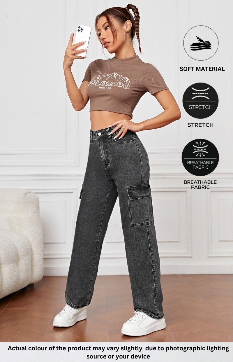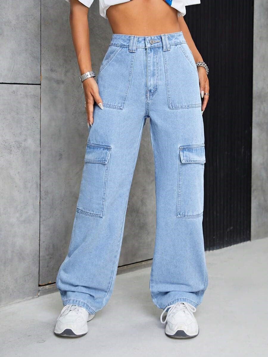 Bring timeless style to your wardrobe with these women's wide leg jeans. Crafted from durable, soft denim, these jeans feature a flattering high rise waist and a leg style that creates a balanced, elongated look.