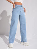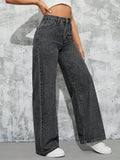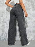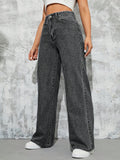 MEELANA Women's Wide Leg High Waist Distress Jeans
