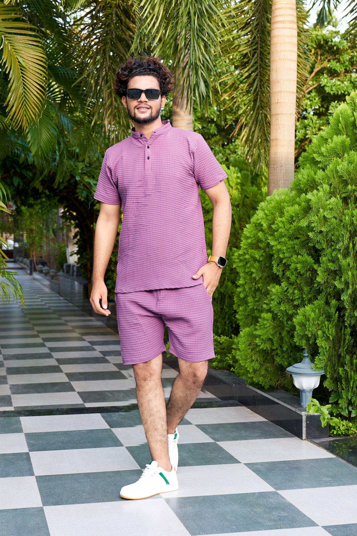 Men's Premium Sugarcane Fabric Purple Co-Ord Set.
