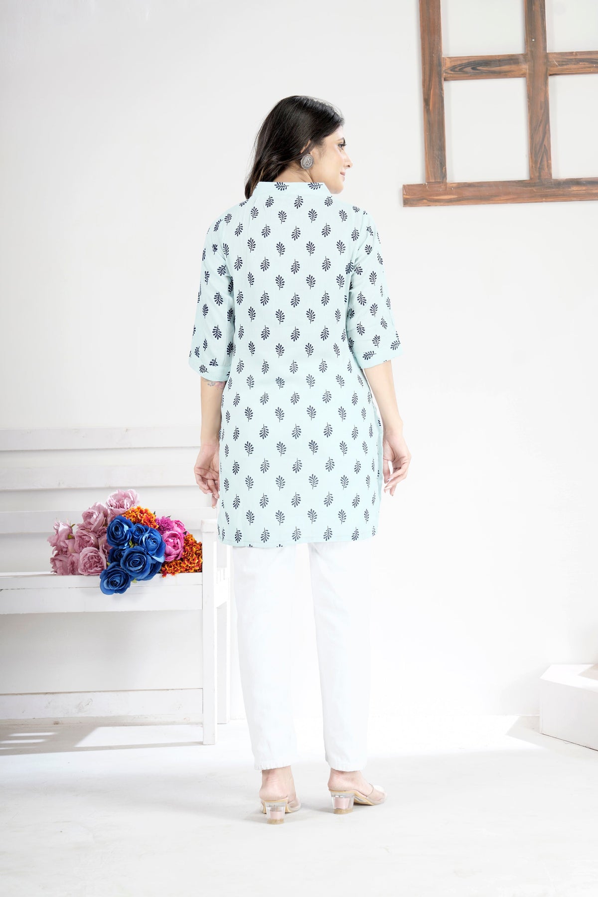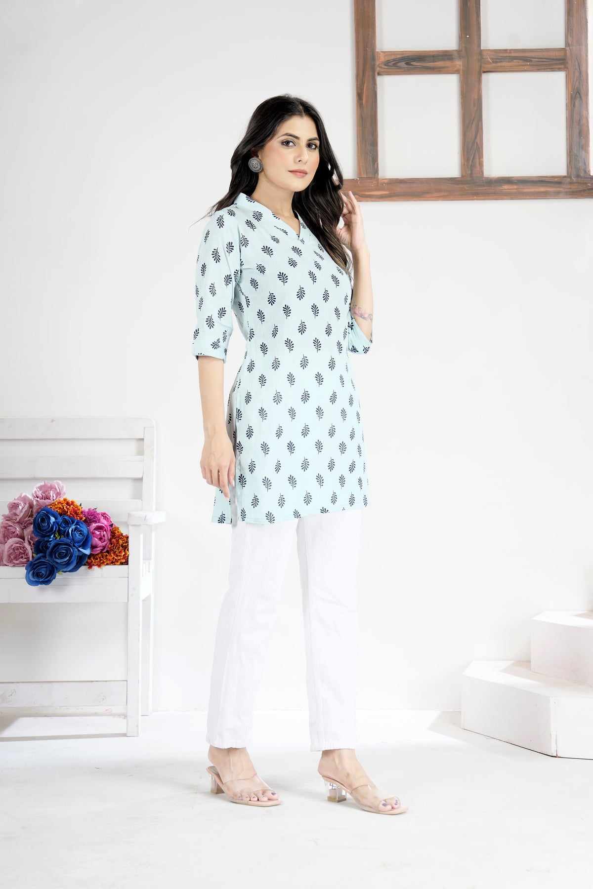 Soft & Stylish Sky Blue Cotton Tops and Tunics for Women.