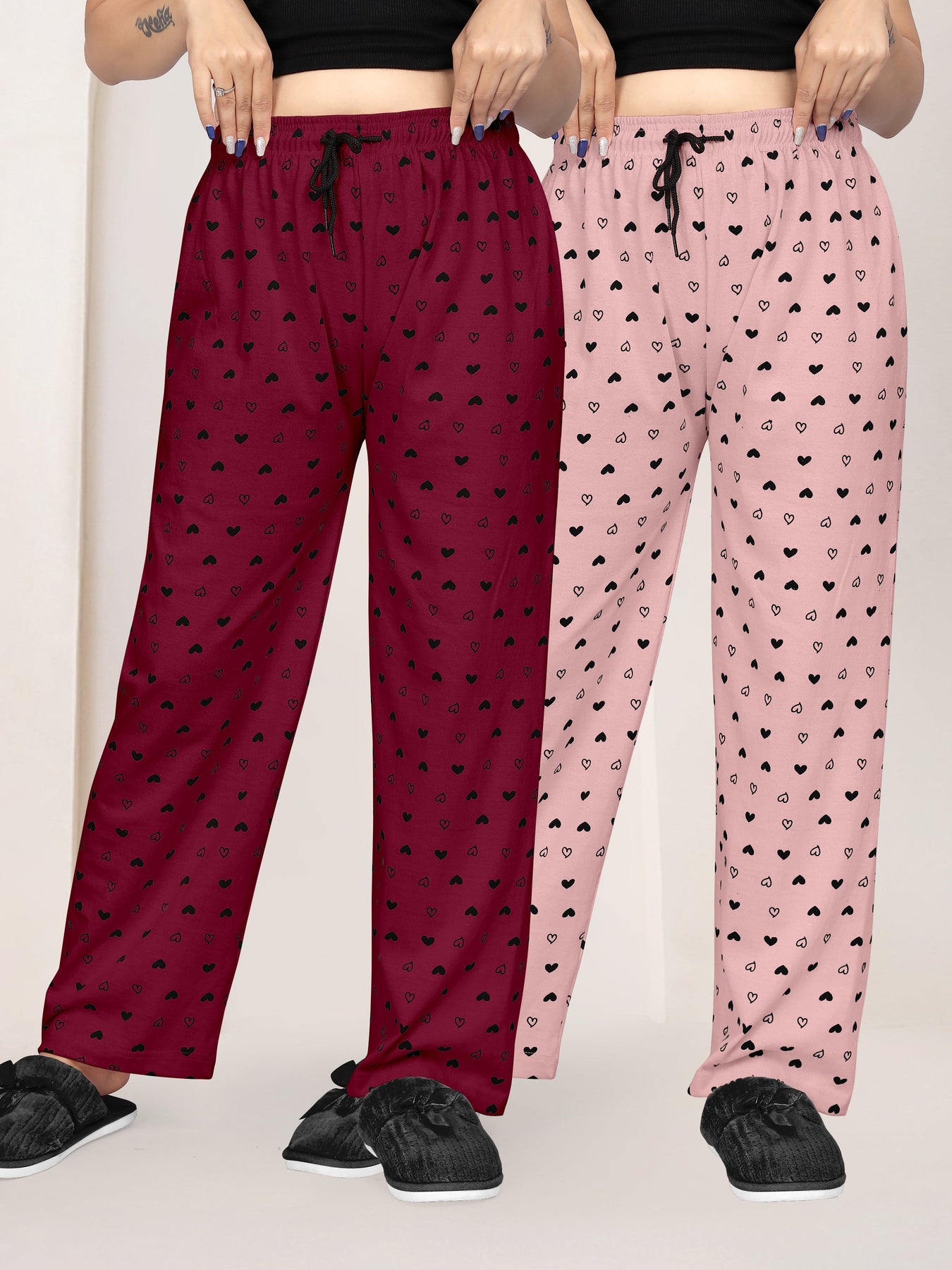 Women Printed Regular Fit Pyjamas(Maroon/Baby Pink)(Pack Of 2)