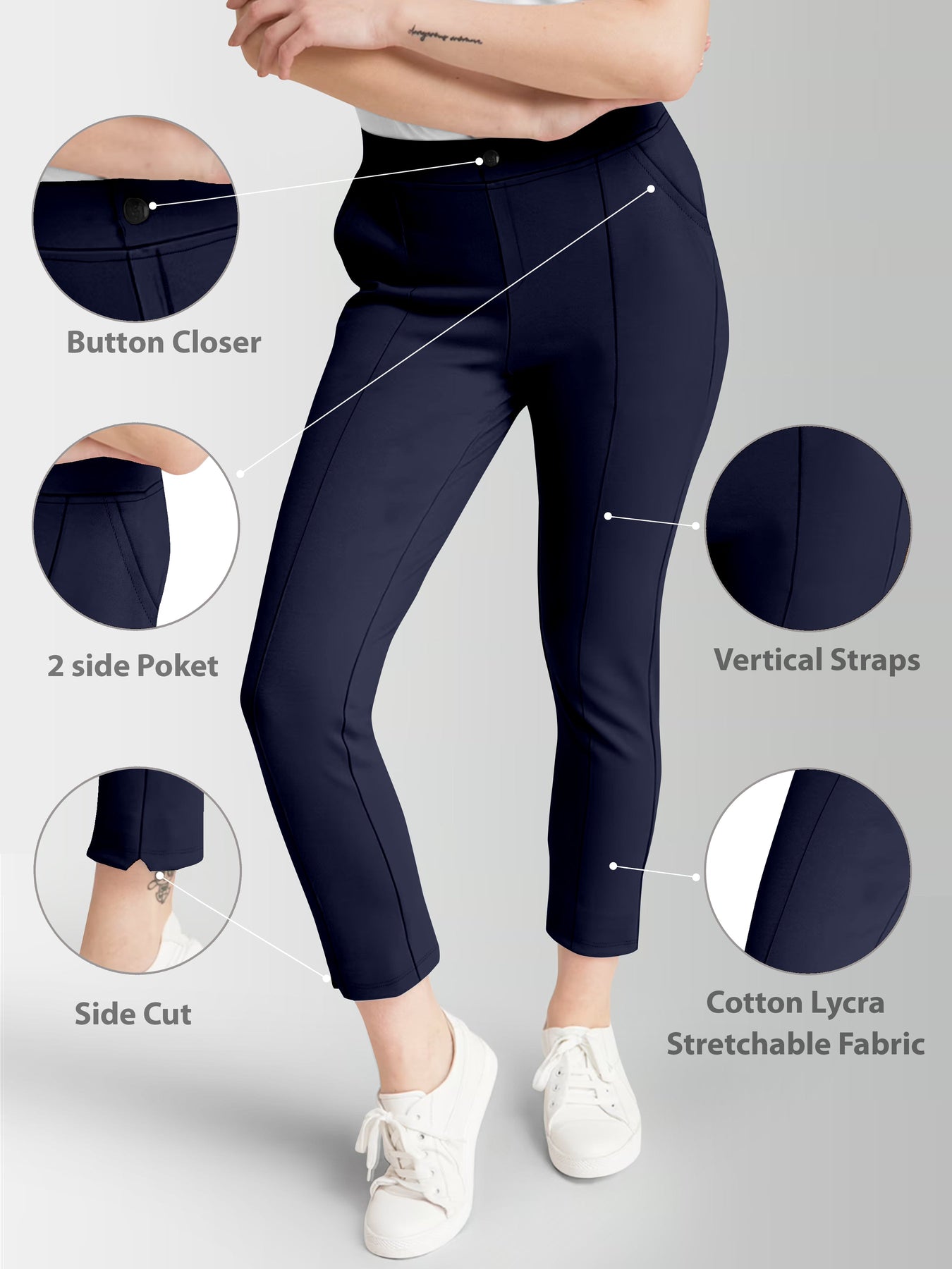 Women's Blue Skinny Fit High Rise Clean Look Regular Length Stretchable Trouser.Track Pant.Jogger.Pant.Body Fit Pent.Formal Trouser.