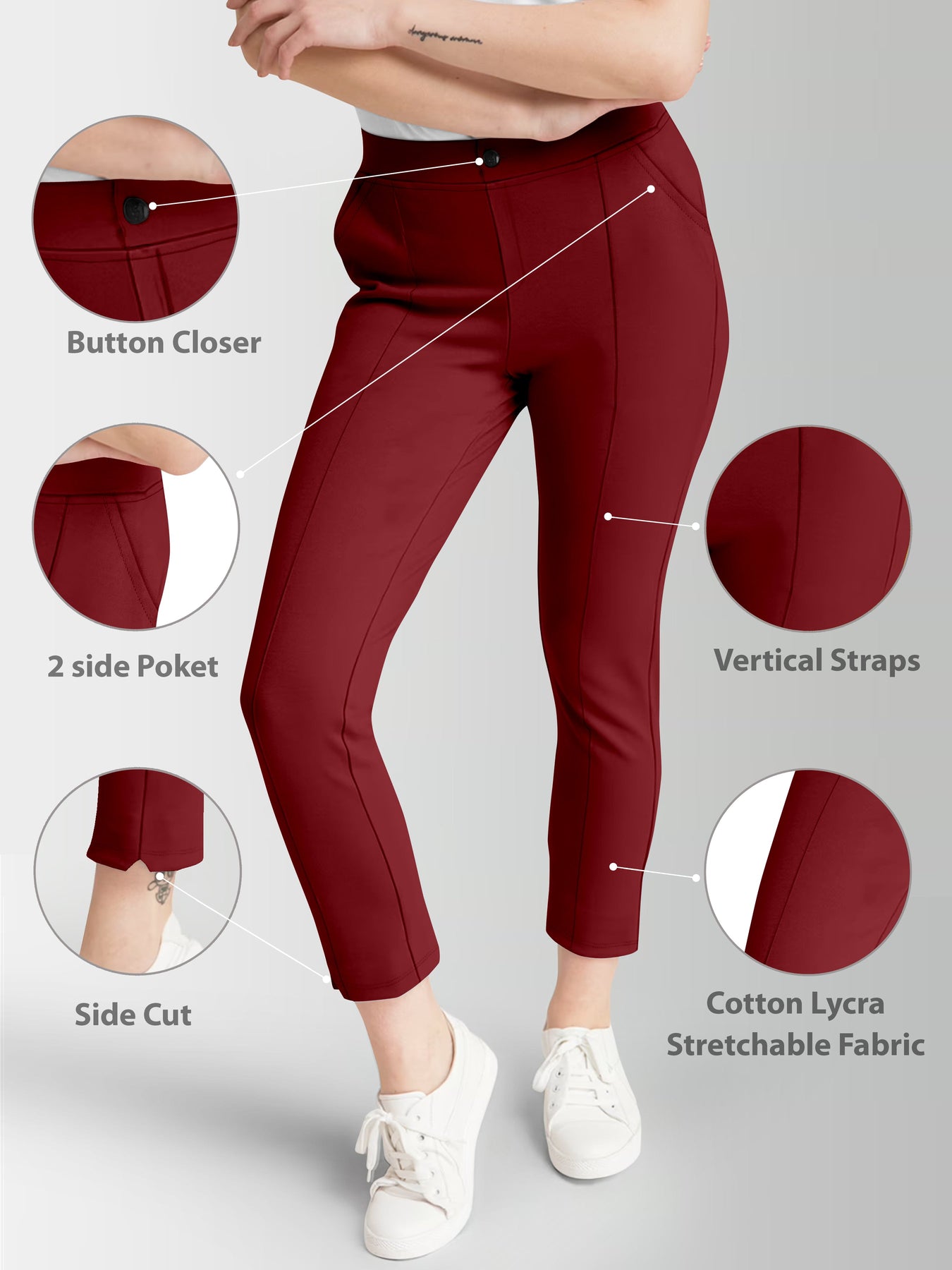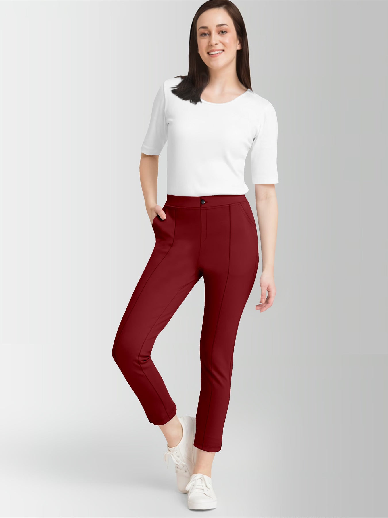 Women's Maroon Skinny Fit High Rise Clean Look Regular Length Stretchable Trouser.Track Pant.Jogger.Pant.Body Fit Pent.Formal Trouser.